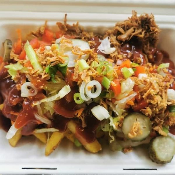 £11.00Skin on Chips topped with Succulent Pulled Jerk Chicken, Jerk Mayo, Crispy Onion, Salad and Sambal.Add to cartCustomise -